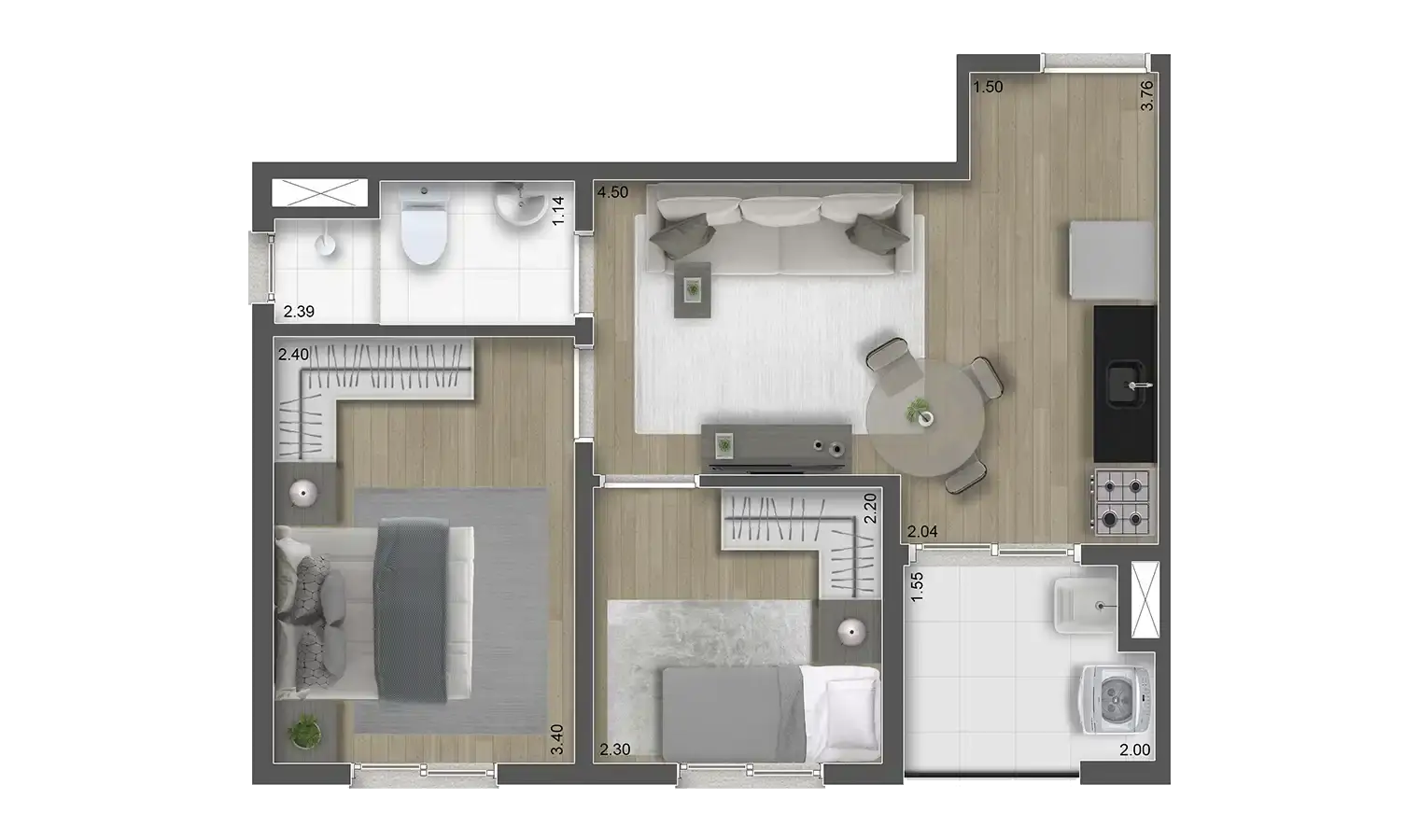Apartamentos projetados para aproveitar cada metro quadrado, garantindo luminosidade, ventilação e praticidade no dia a dia.